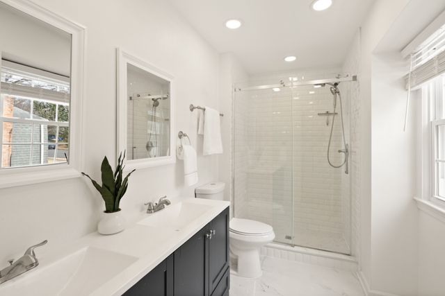 Welcome to this stunning and absolutely turnkey home in Alexandria! Fully renovated in 2022 and loaded with even more recent upgrades, this property truly has so much to offer. Before even entering the home, you'll be captivated by neighborhood of Milway Meadows - this hidden gem is home to beautiful lots, mature trees, and a feeling of privacy that is so hard to come by. Upon entering, you'll immediately feel how spacious the main level is. The gorgeous white gourmet kitchen comes equipped with shaker cabinets, quartz countertops, a clean backsplash, and it all flows right into a magazine worthy living room. The open layout with a striking dark fireplace and open shelving is the perfect combination! Off the kitchen you'll find a lovely dining area complete with a beautiful light fixture and bay window. If that wasn't enough, this level also boasts a massive formal living room that could be used as a sitting room, office space, or recreation room - so many possibilities! Upstairs you'll find 4 spacious bedrooms and 2 full bathrooms, including a fully loaded primary suite. The bedroom is expansive and includes 3 closets with CUSTOM built-ins that make life so much easier. Plus a gorgeous primary bathroom complete with double vanity and standup shower! Downstairs you'll find an open recreation space that would be perfect for a theater, play area, or anything else you can think of! Bonus - there is a massive unfinished space that could be finished to add more square footage, or be used as overflow storage! This home sits on a corner lot and also boasts an incredible outdoor space complete with a patio and a beautiful fenced-in yard! Recent upgrades ($40,000+) within the past 2 years include expanding the concrete patio, added high-end exterior double doors, light fixtures and fans throughout, Tesla charger in the garage and expanding the home's electrical panel, blackout curtains upstairs, and custom closet built-ins with new closet doors in primary. Roof replaced in 2017 and water heater in 2015, and HVAC is on a maintenance contract! The icing on the cake is the location - you're just a short trip from Washington D.C., Old Town Alexandria, the Huntington and King Street Metro stations, and National Harbor! For amenities, including a pool, you have the ability to join the local HOA membership to get full access. This property truly has it all, so be sure to come see it for yourself!